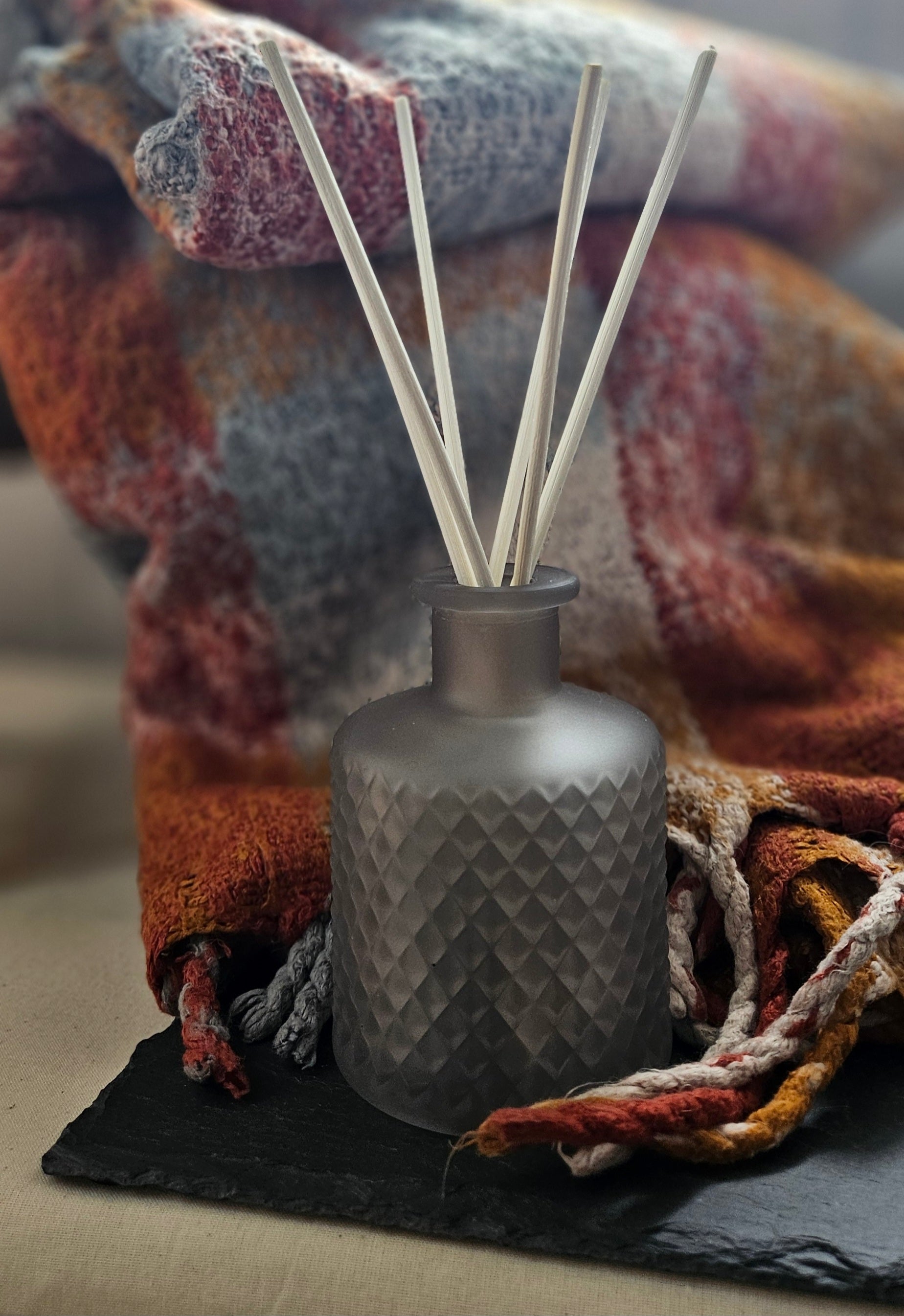 A statement piece for your home, the Lira frosted, diamond cut frosted glass feels as timeless as the Scottish coast. Filled with our hand-poured scents, it releases fragrance beautifully through natural reeds, bringing long-lasting luxury to your space. Designed to be refilled and reused, it is style and sustainability in one.